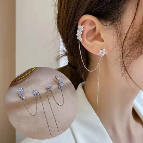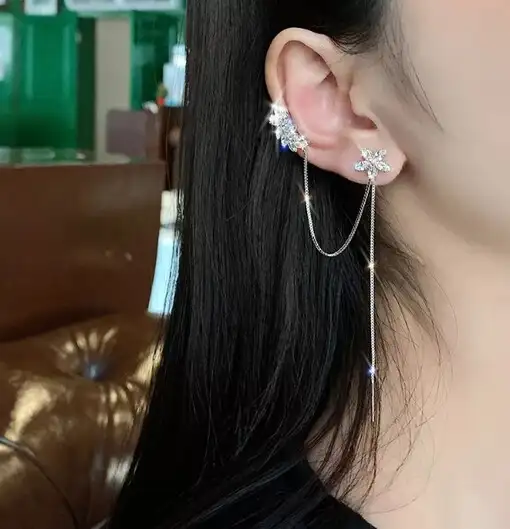 עגילים אלו מעוצבים בסגנון משתלשל שמתאים בצורה מושלמת לאוזן שלך,ניתן לענוד אותם עם כל תשלבושת ובאירועים מיוחדים כמו מסיבות, מועדוני לילה, חתונות וכו'✨.