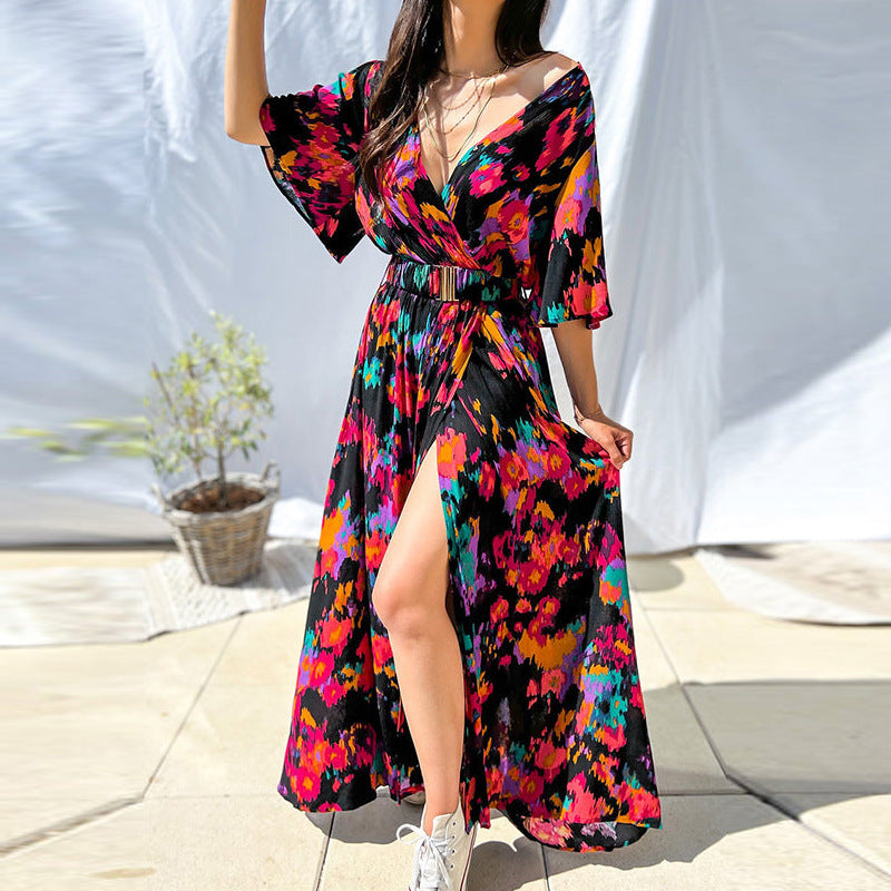 Flora™ | שמלת שסועה עם חגורה