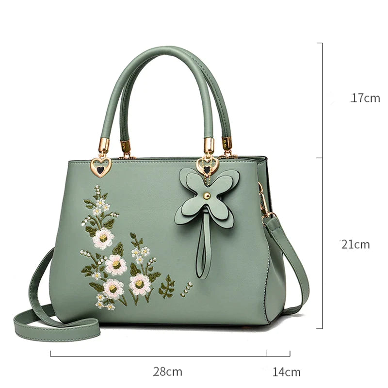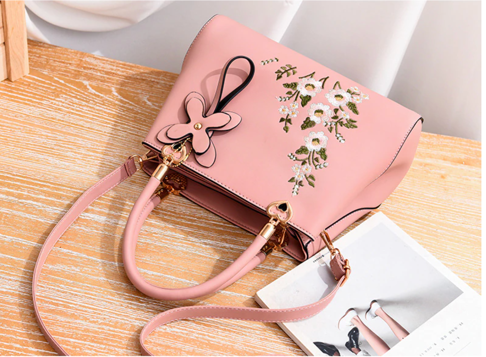 העיצוב הרקום הפרחוני בחזית התיק נותן לו מגע של אלגנטיות ונשיות. התליון היפה מוסיף נופך של נצנצים וזוהר לתיק, מה שהופך אותו למושלם לכל אירוע.