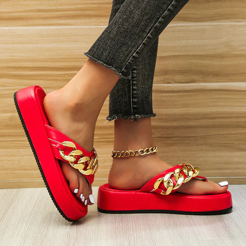 💖 משיכה להצהרה: עיצוב שרשרת המתכת של הסנדלים הללו יוצר מראה נועז ומושך את העין, ומאפשר לך להשמיע אמירה מסוגננת בכל מקום שתלך.