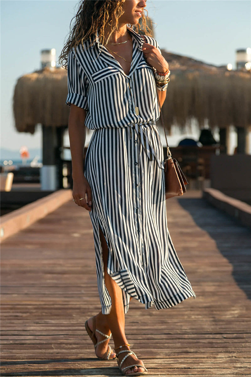 💖 דפוס פסים רב תכליתי: דפוס הפסים הקלאסי של השמלה הוא רב תכליתי ונצחי, מתאים לאירועים ומסגרות שונות.